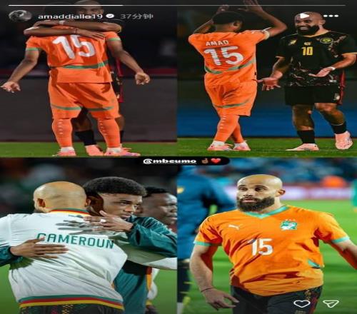 非洲杯科特迪瓦11战平喀麦隆,阿马德赛后晒与姆伯莫照片