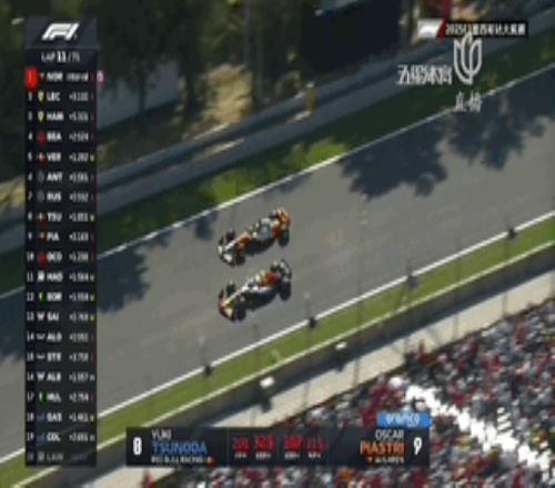 第11圈,皮亚斯特里终于攻破角田强硬的防守,在一号弯前的DRS对其完成超越升至第8名。