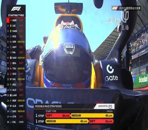 在轮胎选择方面,排名前十的车手中三位红牛系车手统一使用黄胎起步!其余选手均使用红胎。为了争夺WDC,维斯塔潘虽然坦言赛车状态不佳,但依旧希望能用这样的轮胎策略为自己博取一些机会!
