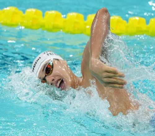 男子800米自由泳预赛中他游出8分钟排名第二,浙江选手费立纬以7分59秒78排名第一。