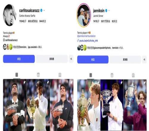 从海外社交媒体(instagram)的数据上,阿尔卡拉斯拥有803万粉丝,辛纳则是507万粉丝。粉丝量更少的辛纳却有着更加凝聚的受众群——在需要注册投票的机制下,这样的“死忠粉”不容小觑。