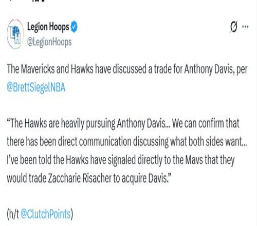 独行侠对交易戴维斯的想法同样十分开放。老鹰则已准备好与特雷-杨分道扬镳,且拥有里萨谢等筹码,足以向独行侠开出极具吸引力的报价。