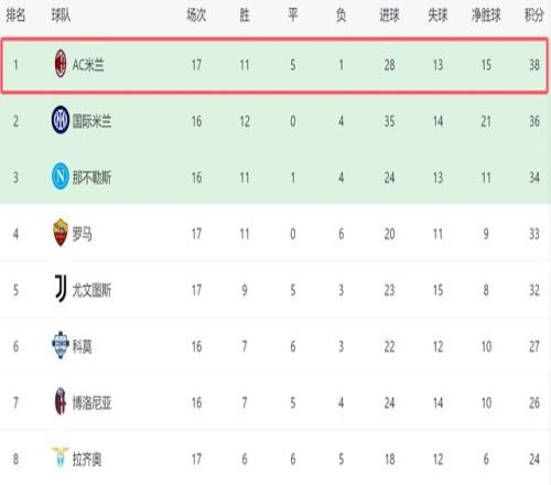 这场胜利,也让AC米兰在意甲反超国米,再度登顶。截至目前,他们领先国米2分,榜首的位置,至少能坐2天,因为国米本轮主场和博洛尼亚的比赛,要在北京时间1月5日凌晨才开始。届时如果能击败对手,国米就将反超AC米兰,重新回到榜首位置,万一国米不胜,那AC米兰就将继续排名第一。