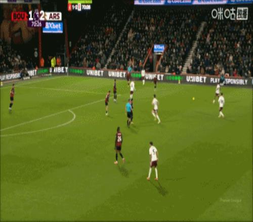 2025-26赛季英超联赛第20轮,阿森纳在活力球场客战伯恩茅斯。上半场加布里埃尔送礼,埃瓦尼尔森破门,随后加布里埃尔补射破门将功补过扳平比分,阿森纳暂1-1伯恩茅斯;下半场厄德高助攻赖斯破门帮助枪手反超比分,随后萨卡助攻赖斯再下一城,克鲁皮为伯恩茅斯扳回一球,最终阿森纳3-2逆转伯恩茅斯,联赛五连胜,先赛6分领跑。