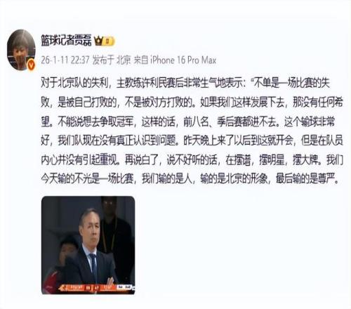 所以,这一场输球后,许利民终于忍不住了,公开批评球员。