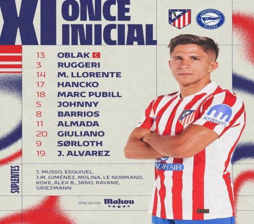 北京时间1月18日23:15,西甲第20轮的一场较量。马德里竞技坐镇主场,迎战阿拉维斯。赛前,双方的阵容公布如下:
